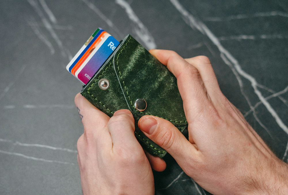 The modern wallet Connor Premium is compact in size, so it will easily fit in your pocket. Nevertheless, it will hold not only 9 cards, but also banknotes and coins. The card case with pop-up card mechanism is RFID protected, so you can have peace of mind that your money will be protected from being scanned.