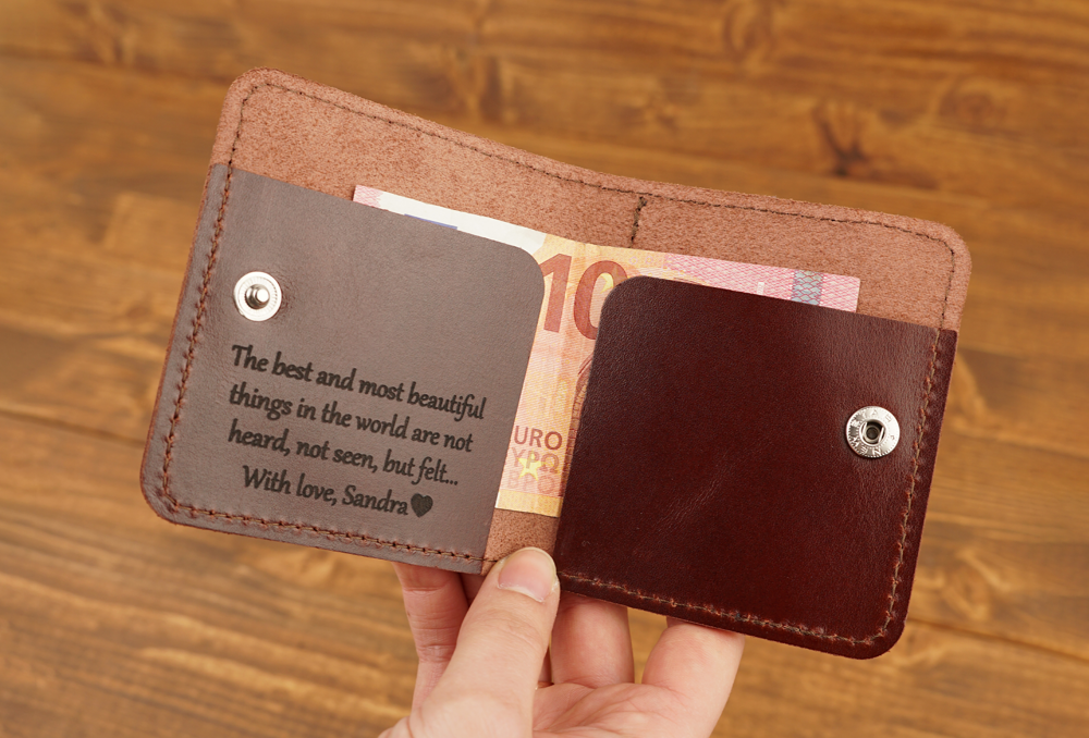 Make your wallet unique by creating your own leather engraving. Save your wishes, initials, phrases, symbols or the most secret messages.