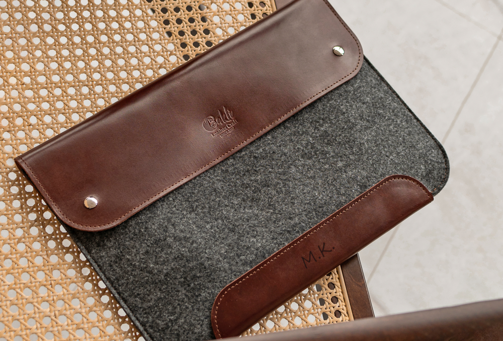 Make your computer case unique by adding engraving on the leather - initials, name, symbols or short words.